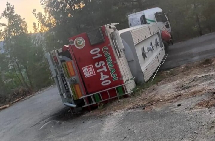 Adana'nın Kozan ilçesinde çıkan orman yangını takımların müdahalesiyle söndürülürken, dönen bir su tankeri devrildi....