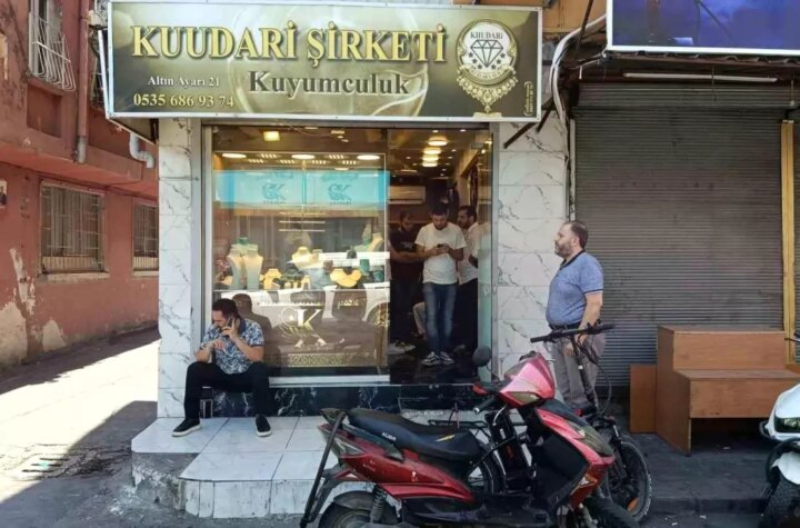 Adana'da motosikletle kuyumcuya gelen şüpheliler, 2 çalışanı bacaklarından vurup yaklaşık 1 kilogram altın çaldı....